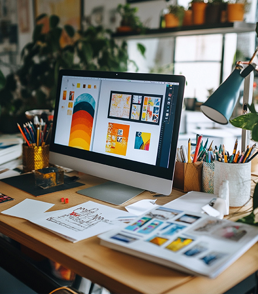 Professional graphic design solutions including branding visuals, marketing assets, and digital creatives aligned with brand identity.